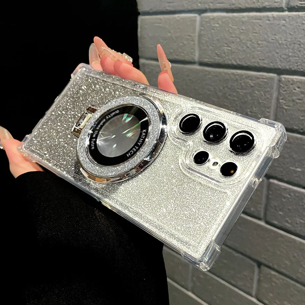 Airbag Drop-proof Magnetic Holder With Glittery Transparent Case