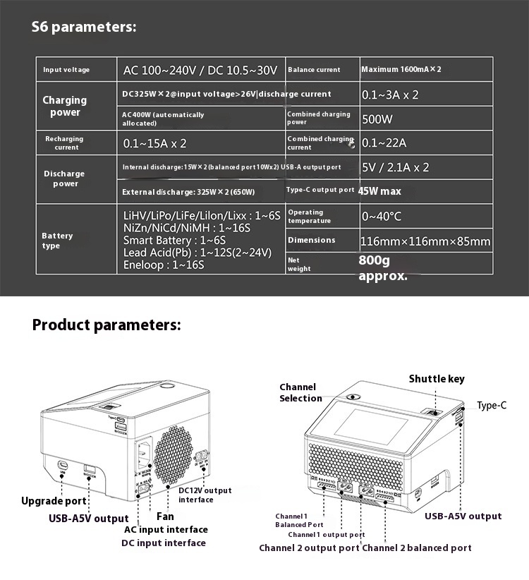 HOTA S6 Smart Balance Charger 1-6S Lithium Battery