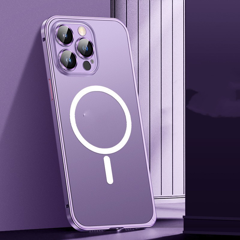 Magnetic Spring Buckle Metal Frame Phone Case Frosted
